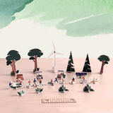In the pack you’ll find wind turbines, solar panels and environmentally conscientious residents growing their own food, exercising in the park and whizzing around on their bikes and electric scooters. Now, all we need is for you to bring your eco village to life.