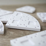 Minimum order quantity: 5 Two-by-Two unit curved module components. These are curved module pieces in the ARCKIT system used to represent the dimensions of a 2.4m x 2.4m or 4ft x 8ft at a 1:48 / 1:50 metric or ¼ imperial scale. These pieces are especially useful in creating curved moments or runs. The modules can be laid out horizontally together and connected with “Links” on any side or stacked upon one another to create topographical steps of varying heights and lengths. When placed into position, these components contain holes and squared indentations that line up with each other and allowing other components to directly pin and snap to the created grid. Use “Curved Panels” along the curved section. Product size: 50x50x5mm |