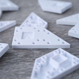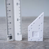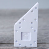 Minimum order quantity: 15 One-by-Two unit angled-right module components. These are angled module pieces in the ARCKIT system used to represent the dimensions of a 1.2m x 2.4m or 4ft x 8ft at a 1:48 / 1:50 metric or ¼ imperial scale. These pieces are especially useful in creating 45 degree angled moments or runs. The modules can be laid out horizontally together and connected with “Links” on any side or stacked upon one another to create topographical steps of varying heights and lengths. When placed into position, these components contain holes and squared indentations that line up with each other and allowing other components to directly pin and snap to the created grid. Use “Wide Panels” along the angled section. Product size: 50x25x5mm |
