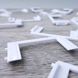 Minimum order quantity: 15 Window corner components in the ARCKIT system used to represent the dimensions of 1.2m x 2.4m or 4ft x 8ft at a 1:48 / 1:50 metric or ¼ imperial scale. These pieces are especially useful for creating large window bays both inline and cornered. Each “Window Corner” contains two pins on the top and bottom which allows them to connect into the corresponding holes of module components. The panels can be placed side by side to create longer wall runs, placed perpendicularly on grid to build a seamless corner with their single-mitred edge or stacked with “Panel Extenders” to construct extended height panels. Product size: 50x5x25mm |