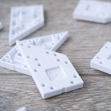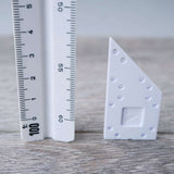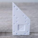 Minimum order quantity: 15 One-by-Two unit angled-left module components. These are angled module pieces in the ARCKIT system used to represent the dimensions of a 1.2m x 2.4m or 4ft x 8ft at a 1:48 / 1:50 metric or ¼ imperial scale. These pieces are especially useful in creating 45 degree angled moments or runs. The modules can be laid out horizontally together and connected with “Links” on any side or stacked upon one another to create topographical steps of varying heights and lengths. When placed into position, these components contain holes and squared indentations that line up with each other and allowing other components to directly pin and snap to the created grid. Use “Wide Panels” along the angled section. Product size: 50x25x5mm |