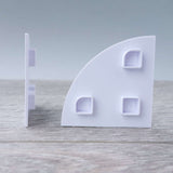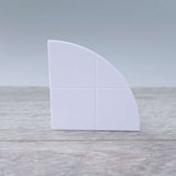 Minimum order quantity: 5 Two-by-Two unit curved module tile components. These are curved tile pieces in the ARCKIT system used to represent the dimensions of a quarter circular plate with a radius of 2.4m or 8ft at a 1:48 / 1:50 metric or ¼ imperial scale. These pieces are especially useful for creating a smooth finish to floors, roofs and landscapes on curved module components. These tiles come as individual modules that can be pressed into the top squared recesses of module components. These also provide an even surface for applying ‘Arckitextures.’ Product size: 50x25x5mm |