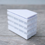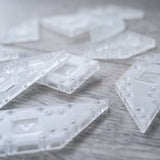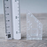Minimum order quantity: 15 One-by-Two unit angled-left module components. These are angled module pieces in the ARCKIT system used to represent the dimensions of a 1.2m x 2.4m or 4ft x 8ft at a 1:48 / 1:50 metric or ¼ imperial scale. These pieces are especially useful in creating 45 degree angled moments or runs. The modules can be laid out horizontally together and connected with “Links” on any side or stacked upon one another to create topographical steps of varying heights and lengths. When placed into position, these components contain holes and squared indentations that line up with each other and allowing other components to directly pin and snap to the created grid. Use “Wide Panels” along the angled section. Product size: 50x25x5mm |